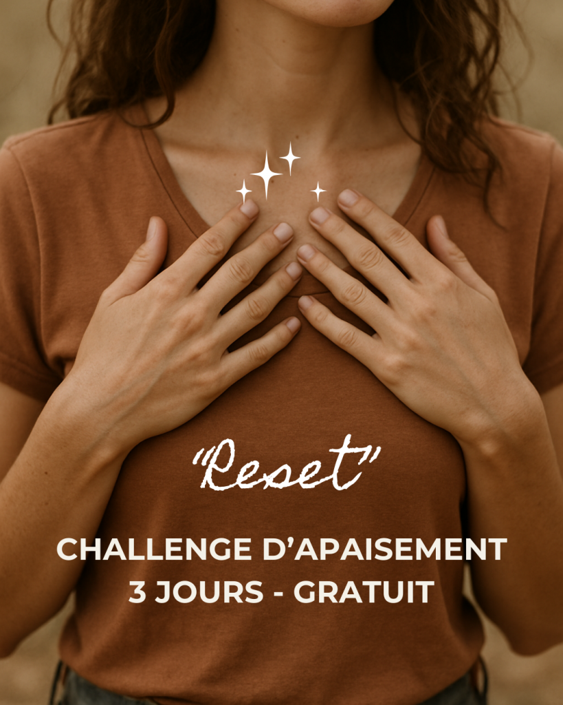 Ce challenge est une invitation à redescendre de ta tête, revenir à ton corps, et retrouver ta sécurité intérieure, sans y passer des heures et sans exiger de toi ce que tu n’as plus l’énergie de donner.